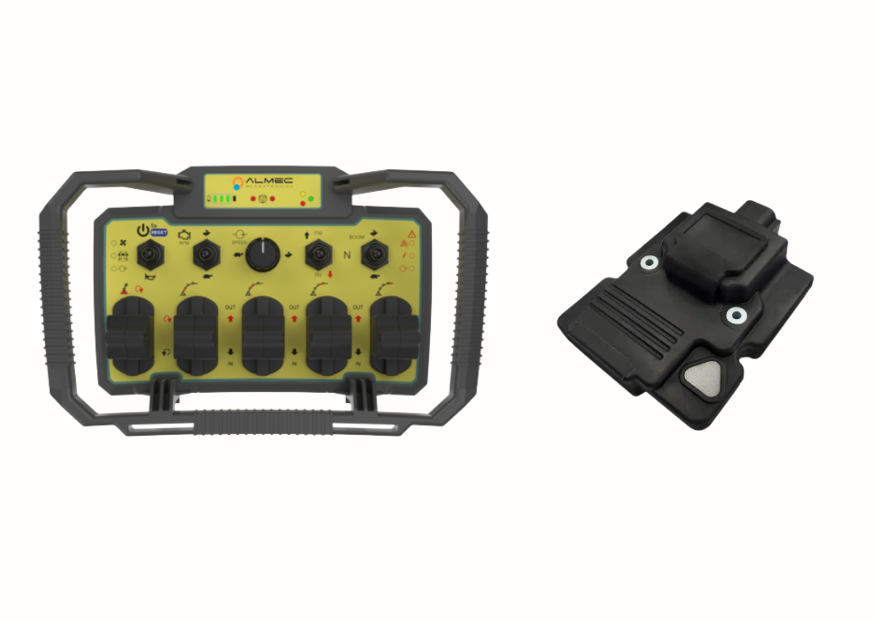 Slave: the secondary unit of the system – the Basket Control Panel, installed on the operator’s basket, performs this function by allowing the operator to interact with the machine and operate it in compliance with regulations. The slave units also host sensors such as the TRS.184, which support vehicle automation and ensure diagnostics and operational reliability. The entire design uses a reduced cable bundle to guarantee greater efficiency and ease of integration.