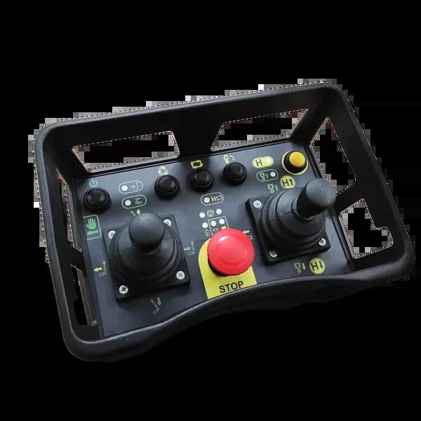 Dispositivo di controllo remoto portatile per macchine di sollevamento industriali, movimentazione materiali e piattaforme aeree dotate di rete CAN bus e/o ricevitore RDC EVO